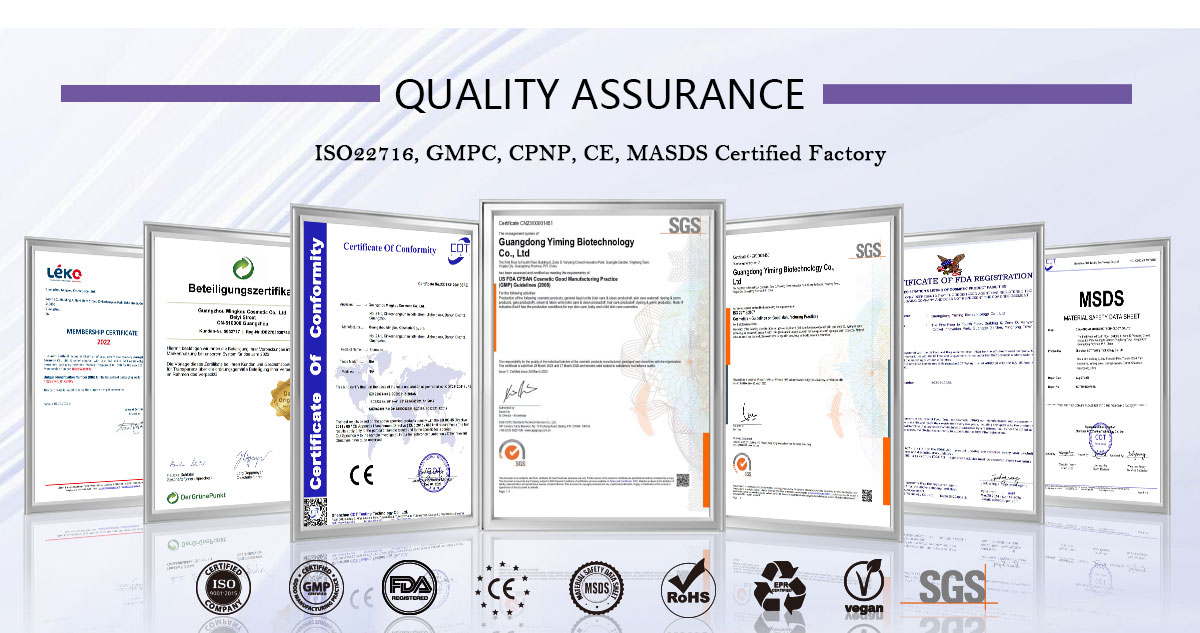 ISO22716, GMPC, MSDS, FDA, CE, EPR |