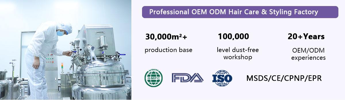 Our factory accepts OEM/ODM orders, especially in the field of hair care. Our main products include different types of hair shampoo, conditioner, Keratin treatment, masque, hair straightening cream, hair dye, hair perming, hair styling, personal care products, pet shampoo, and so on.